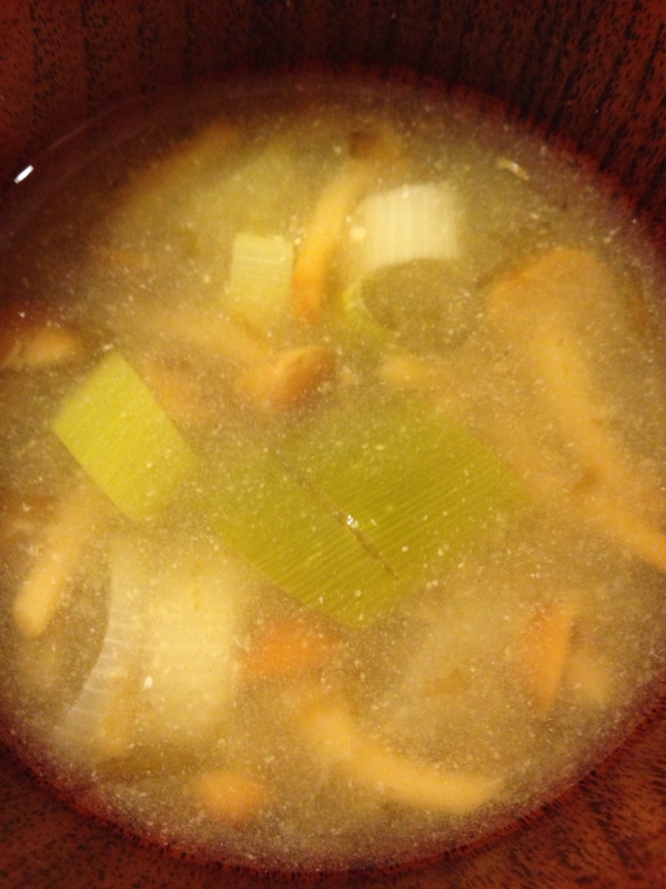 白ねぎとなめこで味噌汁はいかがですか Mishimaya