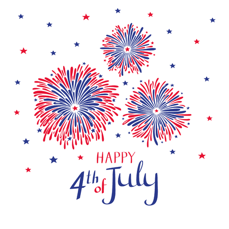 7月4日 日 独立 青 星 花火 ストライプ イラスト ベクトル 背景 白い赤 Canstock