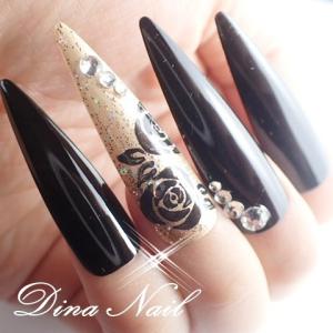 Amazon Dkhf つけ爪 偽の爪にパンクシルバー光沢のある明るいブラックプレス非常に長い指の爪 Dkhf ネイルチップ 通販